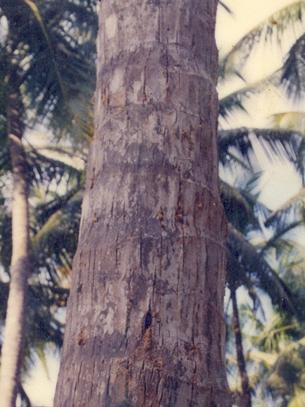 - Fibres of the petiole base become loose and the petiole loses its grip to the stem. Fronds thus attacked will hang from the trunk.