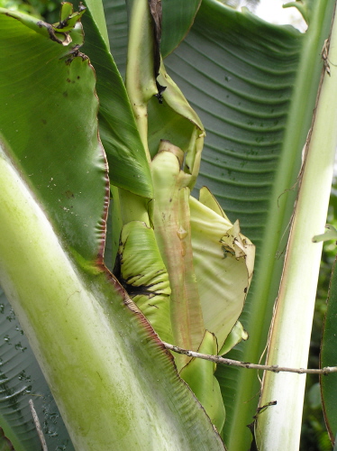 When plants outgrow their calcium or boron supply it results in deformed, bunchy and yellow leaves at the center/top of the plant resembling bunchy top disease. Deformation of the flag leaf can also be induced by