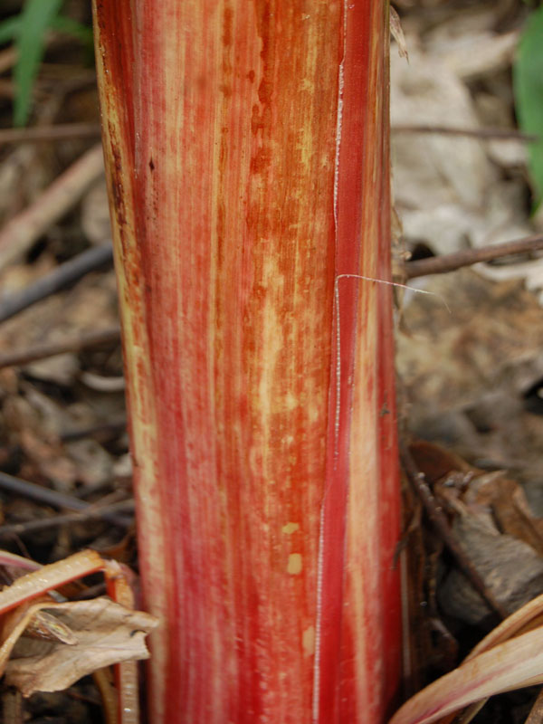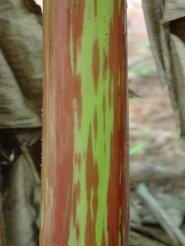 - Numerous reddish/pinkish streaks make the entire pseudostem reddish or pinkish