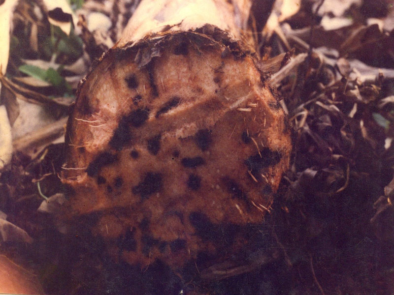 - The tunneling by the grubs makes the corms susceptible to invasion by secondary decay organisms. Production and growth of suckers reduced when parent plants are heavily damaged.