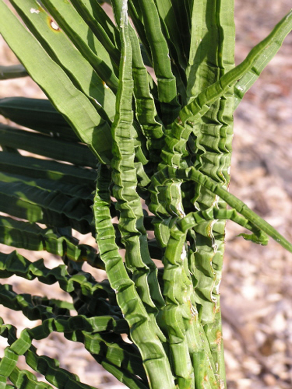 Abnormal growth of the youngest leaves (very active growing points or tips of the palm).