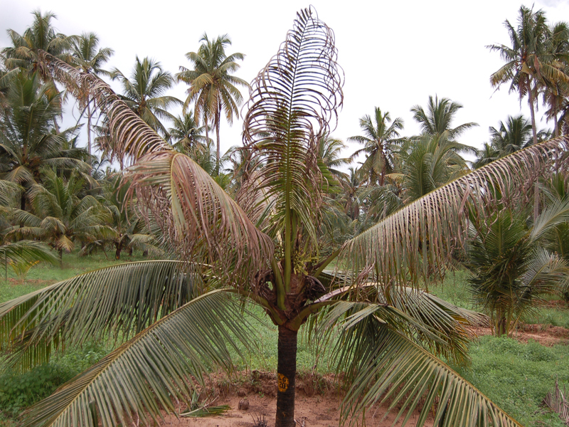 - Apply Trichoderma @50 g per palm along with FYM Root feeding with tridemorph 5%, thrice a year during April-May, September-October and January-February can be done to prevent further spread of lesions.