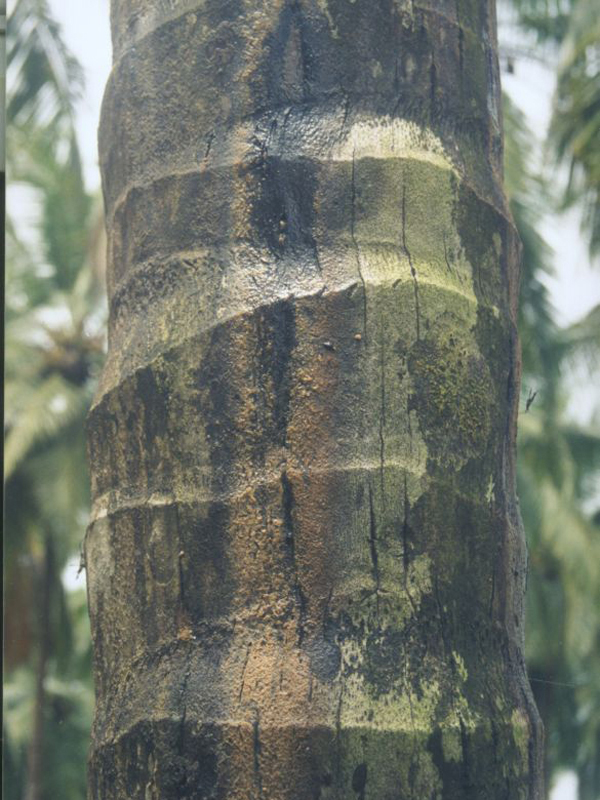 - Apply Trichoderma @50 g per palm along with FYM Root feeding with tridemorph 5%, thrice a year during April-May, September-October and January-February can be done to prevent further spread of lesions.