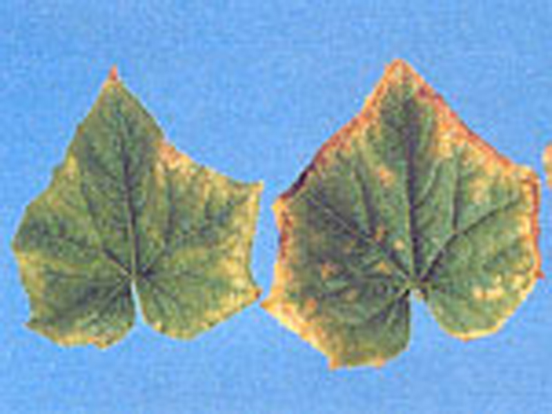 - The symptom begins between the major veins, which retain a narrow green border.