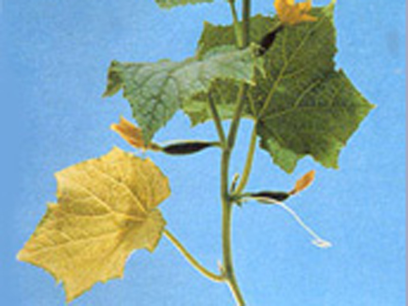 - . Brown patches appear between the veins on mature leaves.