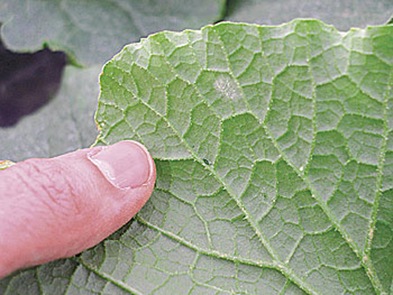 - The foliar symptoms are initiated as whitish grey superficial spots on the upper surface.