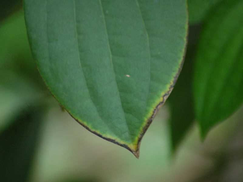 Symptoms Browning and necrosis of older leaf tips and margins. Symptoms later spread to younger leaves.