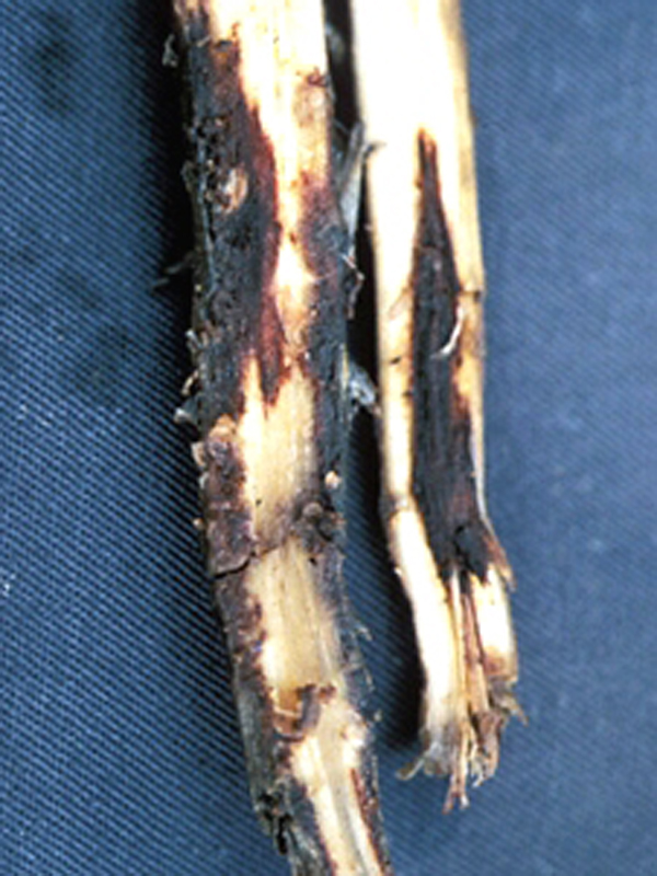 Observe the roots for the presence of knots or lesions. Send sample to laboratory for confirmation if necessary.
