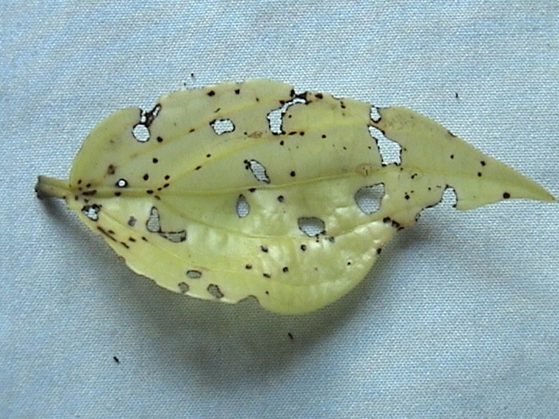 - The bug causes elongated nectrotic lesions on the tender shoots and irregular necrotic spots on tender leaves (Image1).