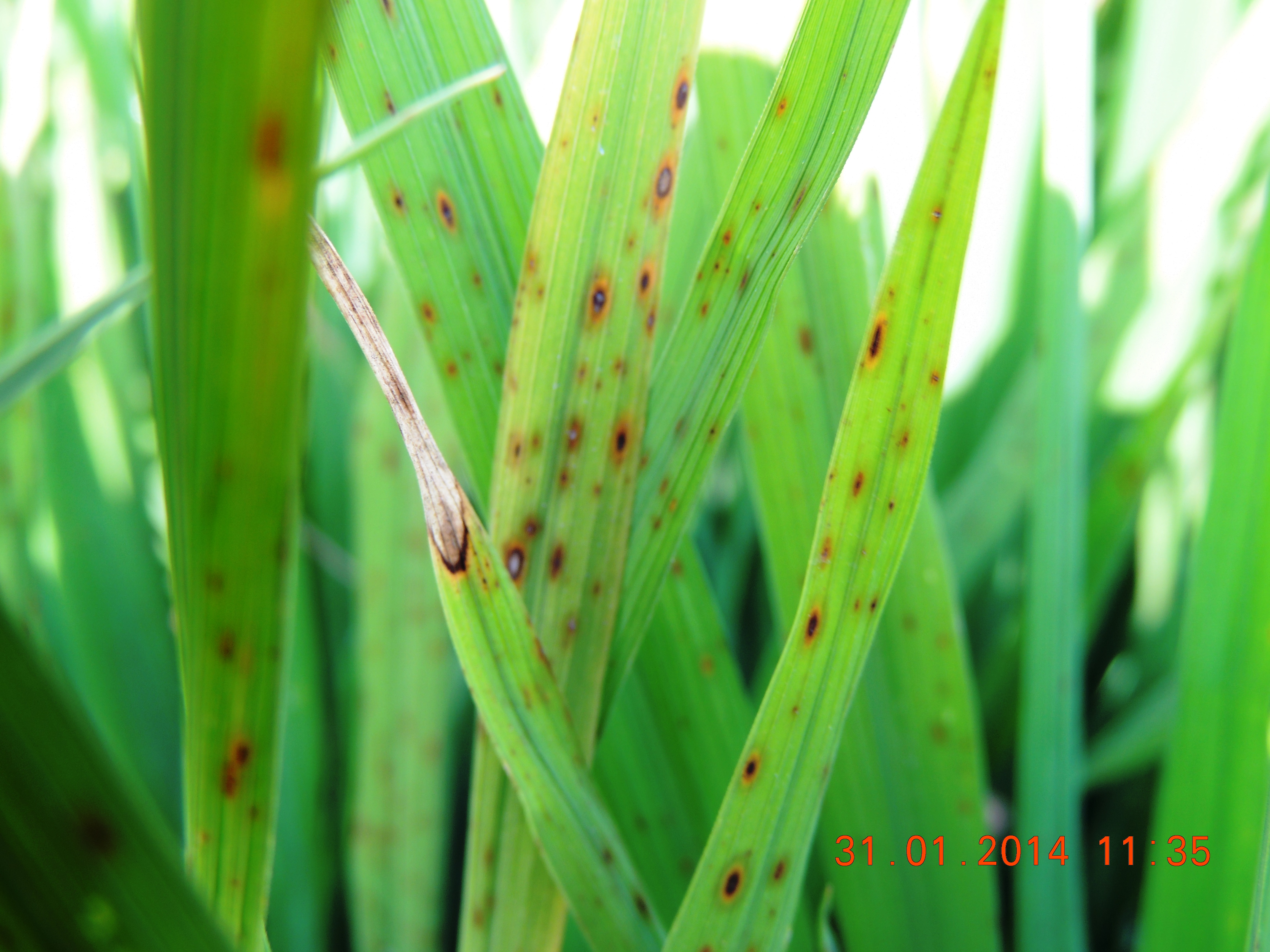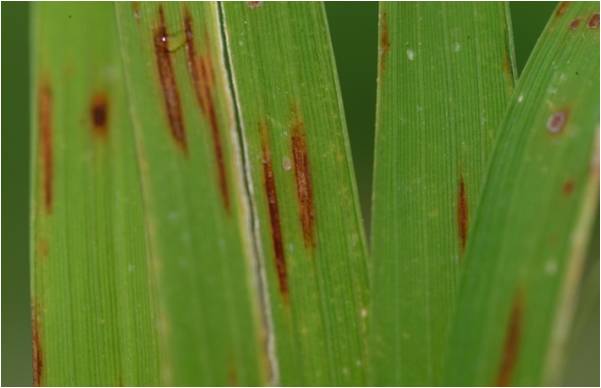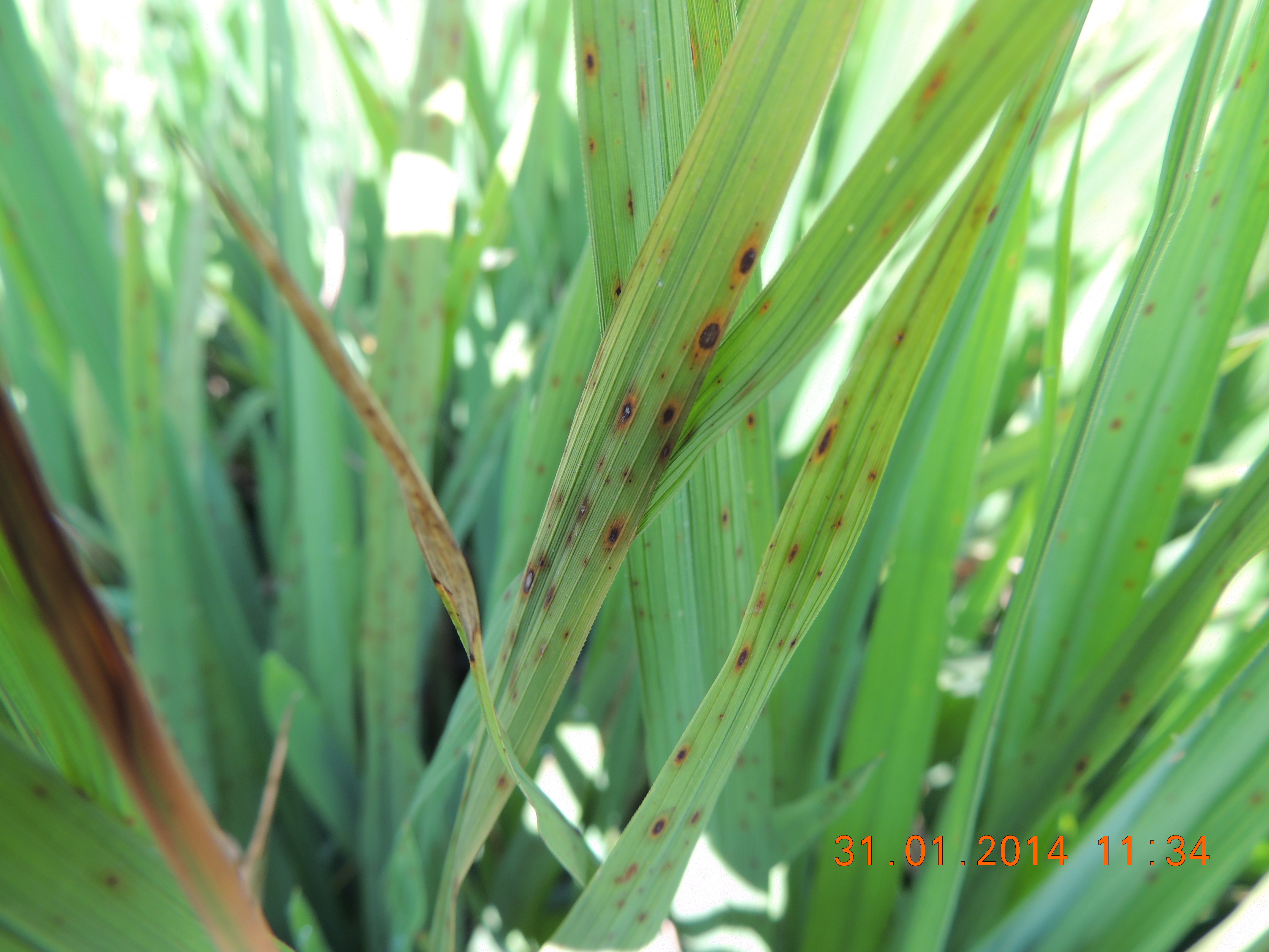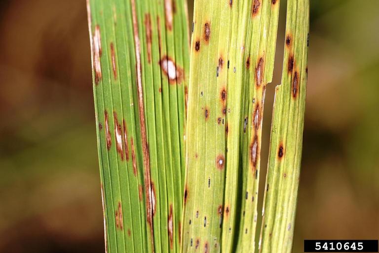 - The symptoms of the disease are found on leaves, glumes , coleoptile, leaf sheaths, and panicle branches and rarely on roots of young seedlings and stems.