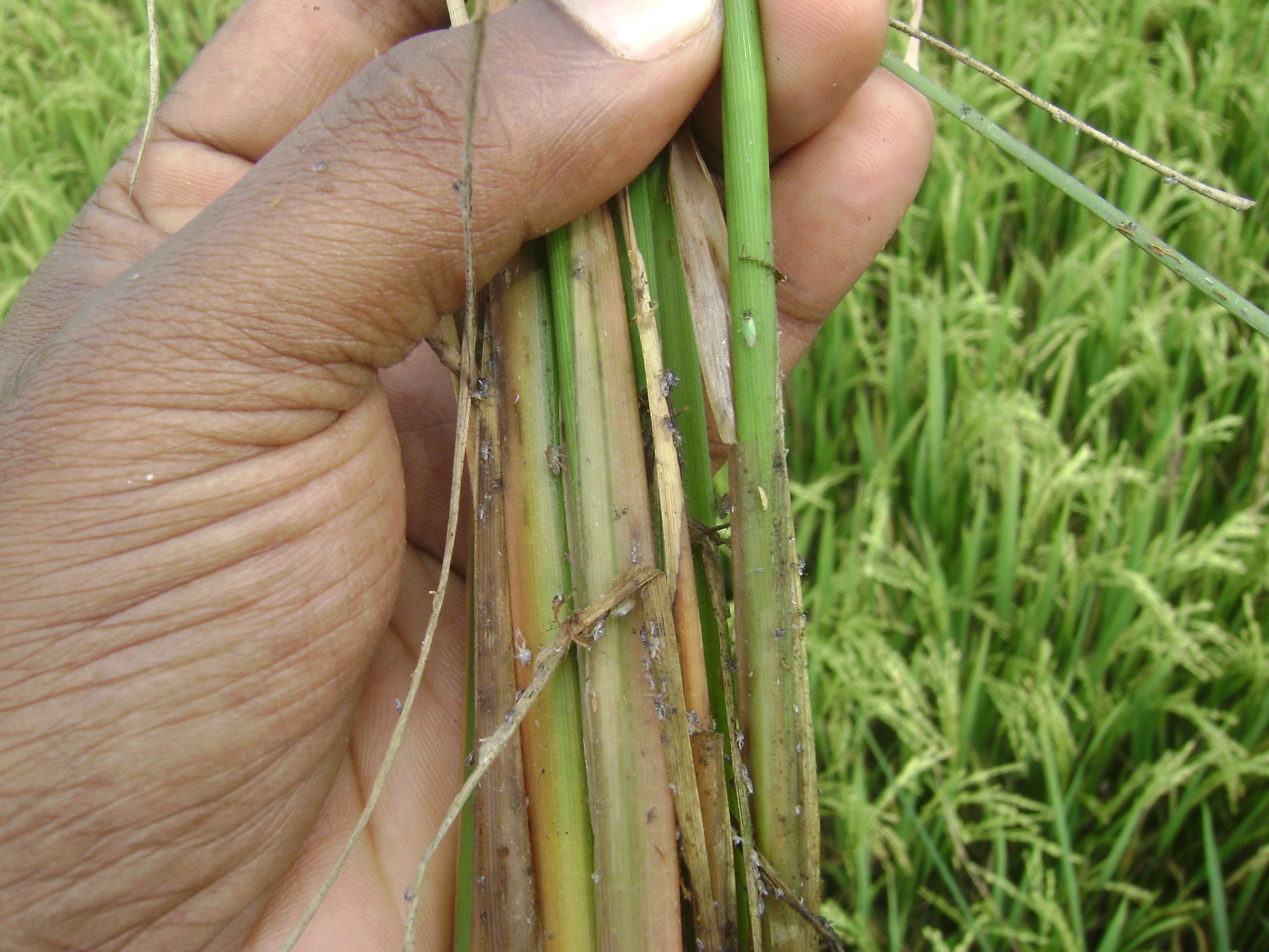 - As a result of BPH feeding, at the base of rice plants,the plants first turn yellow followed by drying.