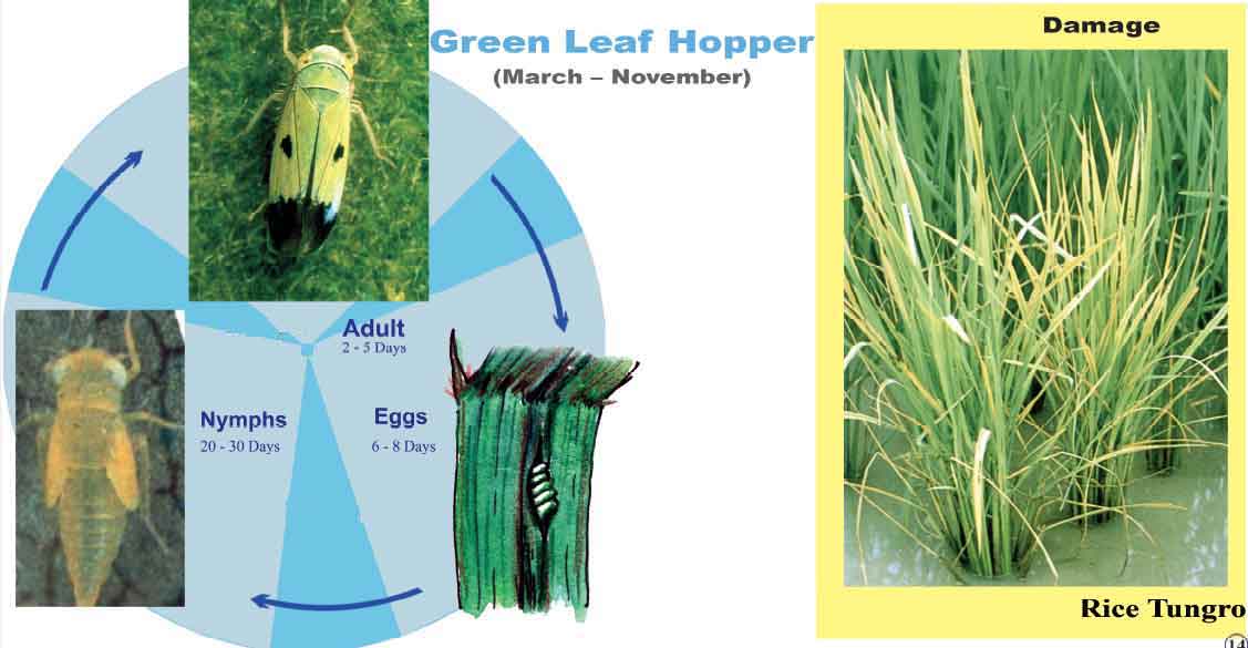 - Green leaf hoppers transmit tungro, virus and transitory yellowing virus diseases.