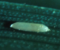 - Typical damage is degenerated tissue along the inner margins of emerging leaves.
